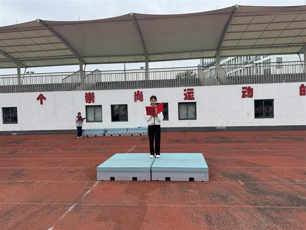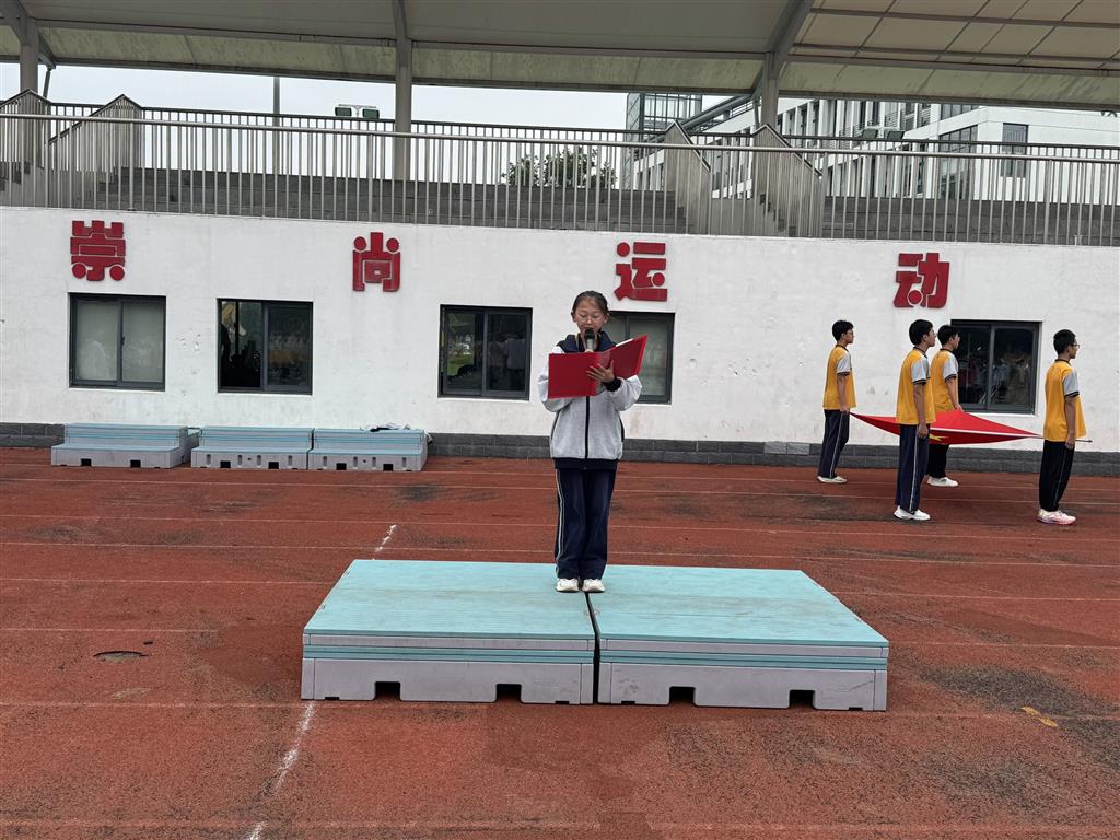 随后,来自七 5 班的徐婧辰同学作为学生代表发表主题发言。徐婧辰同学热爱阅读、擅长跳舞,阳光开朗的她始终对新鲜事物充满探索欲。发言中,她以《盛世中华,爱国情长》为题,结合晨光中的国旗与回荡的国歌,深情抒发了刻在中国人骨子里的家国情怀。她回顾百年征程,细数祖国发展的辉煌成就:脱贫攻坚让近 1 亿农村贫困人口告别贫困,“嫦娥” 探月、“祝融” 探火彰显中国航天力量,疫情期间无数逆行者筑起生命防线…… 这些亲身见证的 “中国力量”,让在场师生深刻感受到 “国家好,民族才会好” 的深刻内涵。