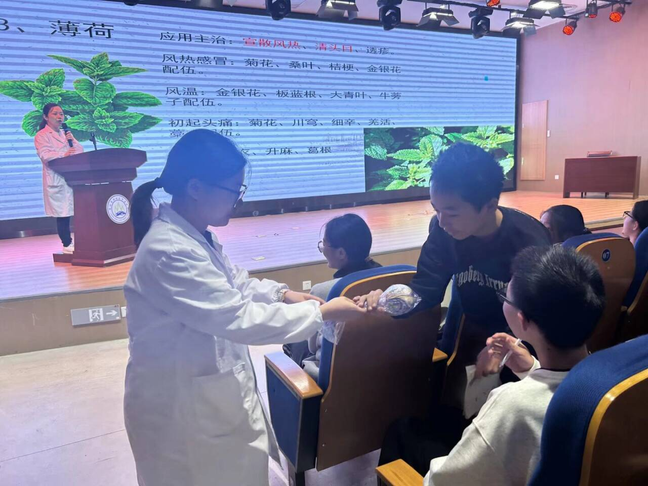 整场活动中,同学们时而专注聆听,时而踊跃互动,报告厅内始终保持着热烈的学习氛围。八年级的同学兴奋地表示:“原来中医药不仅治病救人,还包含着这么多有趣的学问,我要把这些知识分享给家人。”