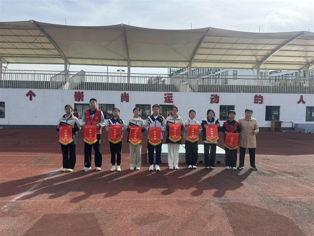 赵校长为获奖班级颁发 “溪星班级” 荣誉红旗,各获奖班级班长上台领奖。全校同学向获奖班级表示祝贺,希望他们珍惜荣誉、再接再厉,并鼓励其他班级以其为榜样,在校园中展现班级风采。